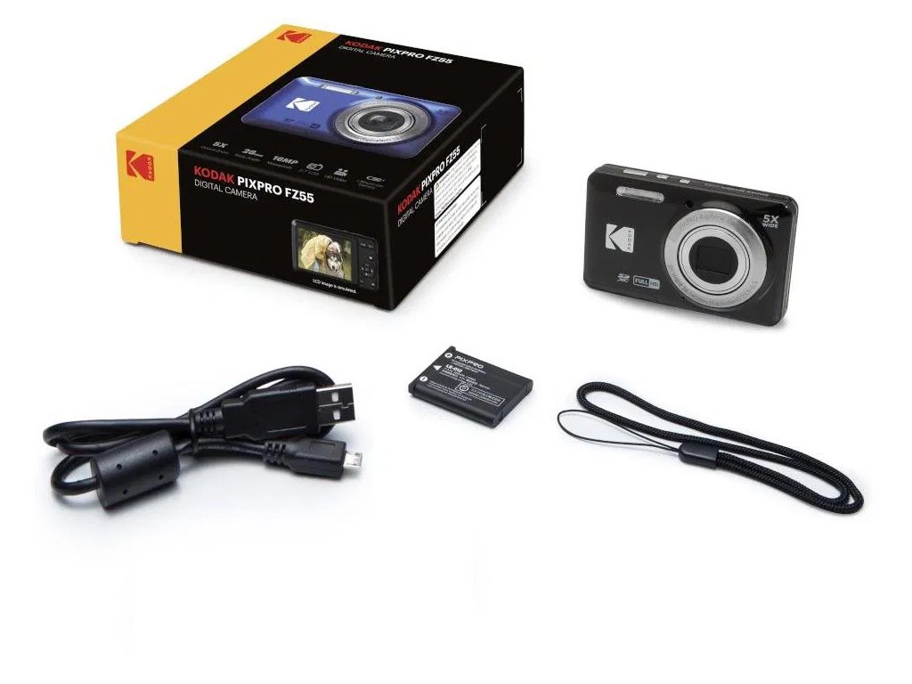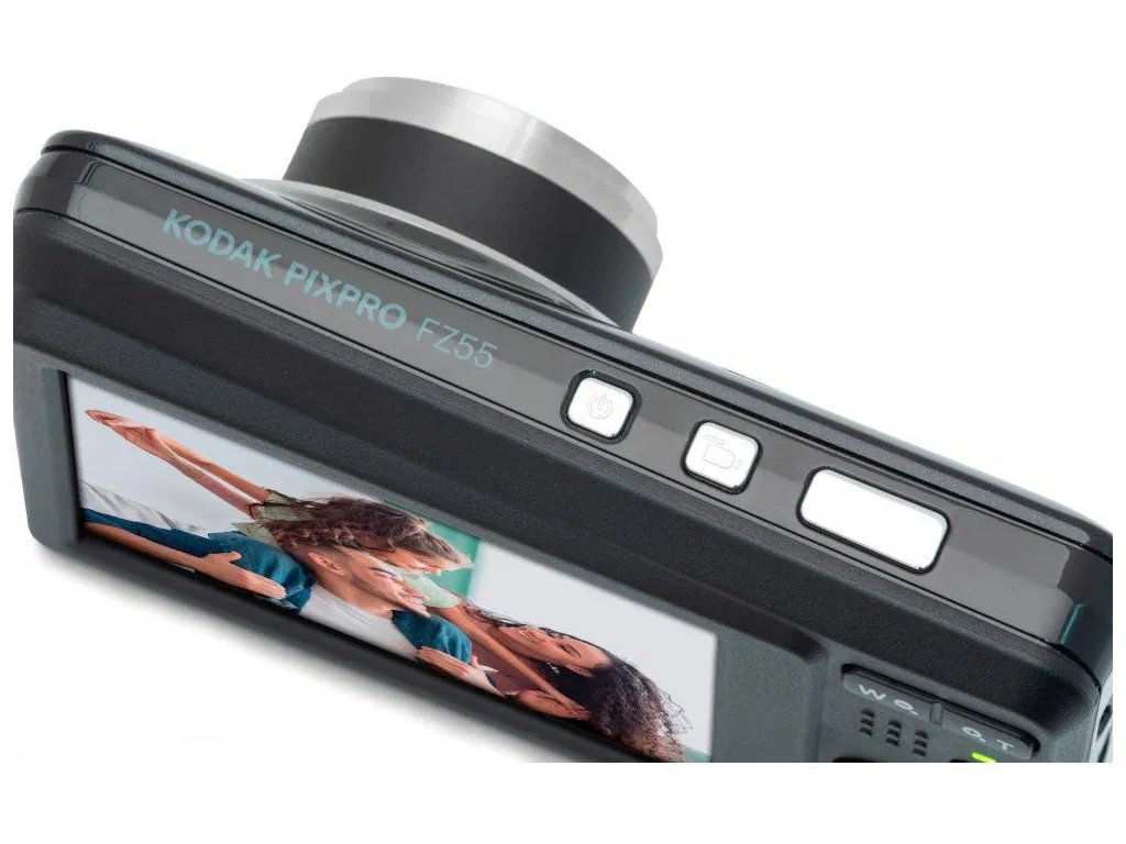 Visoku kvalitetu fotografija donosi kompaktni fotoaparat Kodak Friendly Zoom FZ55 Black. Ima CMOS senzor veličine 1/2,3" i omogućuje snimanje fotografija i videozapisa u Full HD rezoluciji. Ukupna rezolucija je 16 Mpx, a 2,7" ekran omogućuje jednostavno upravljanje funkcijama. Fotografije se pohranjuju na SD, SDHC i SDXC kartice, a fotoaparat se napaja preko micro USB kabela i baterije. Ugrađena elektronička stabilizacija slike osigurava oštre snimke i stabilne videozapise.